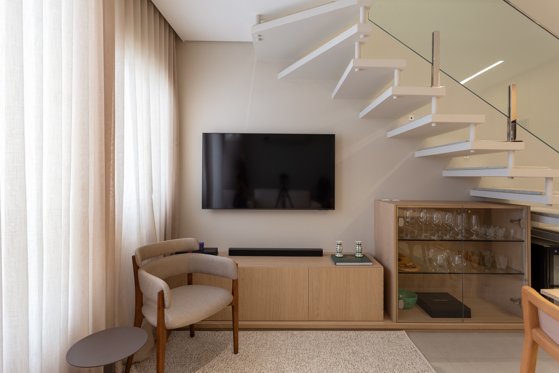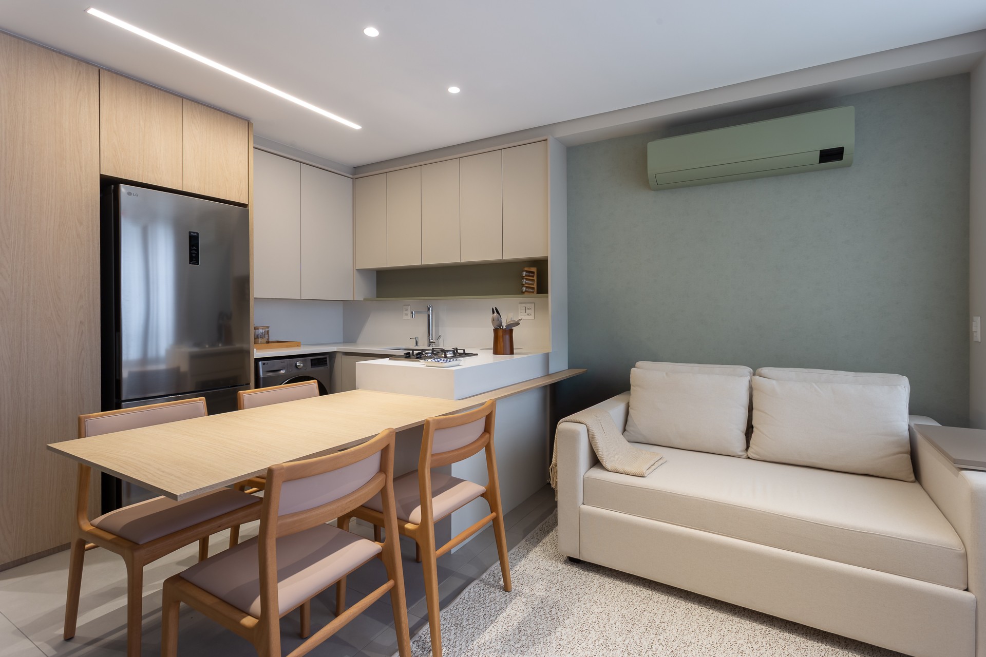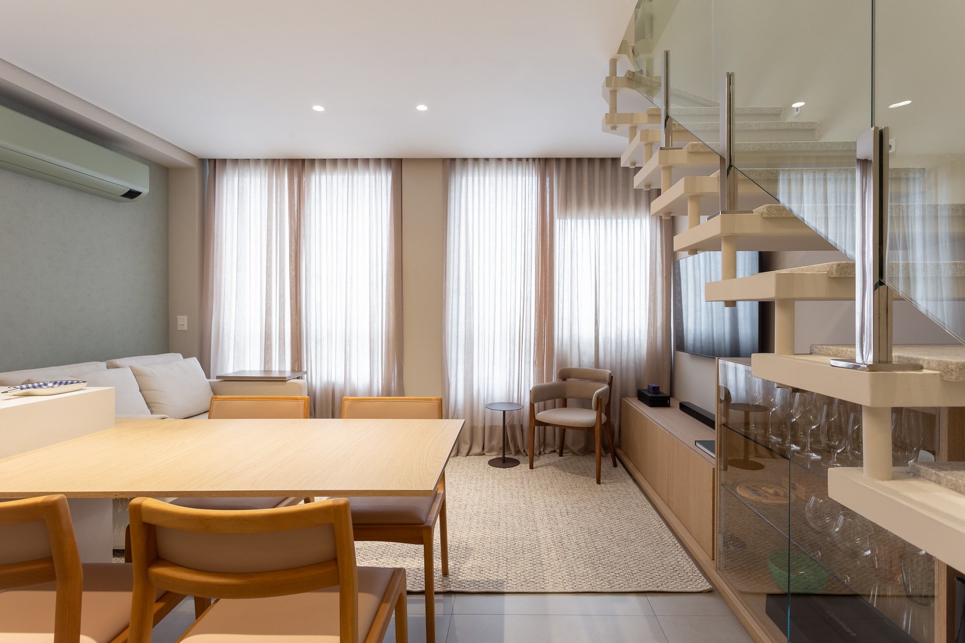 Interiores de um apartamento localizado no bairro Centro, Florianópolis/SC. Projeto de Interiores e Gestão da Obra: Elo Arquitetos Fotografia: Rudimar Razador